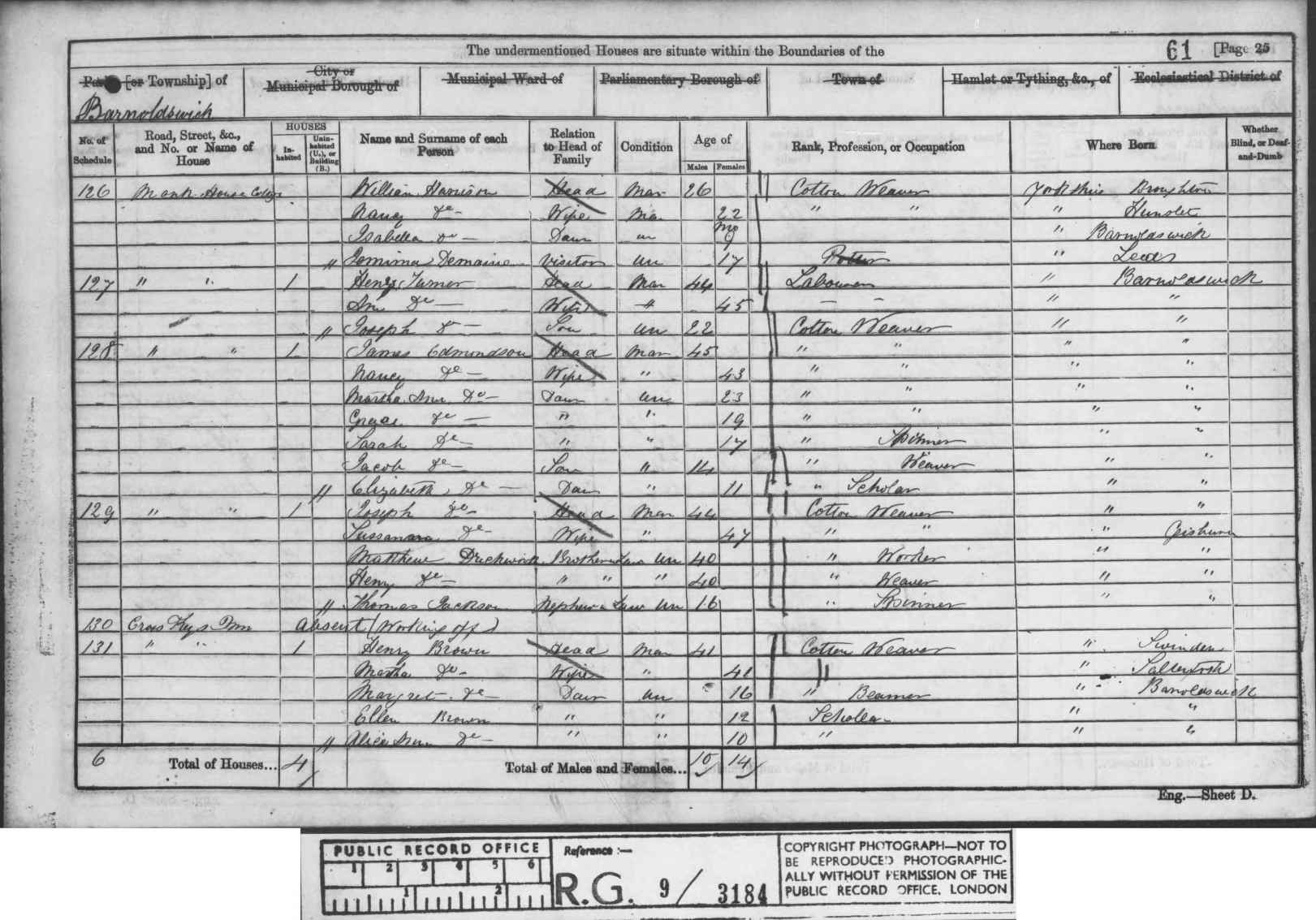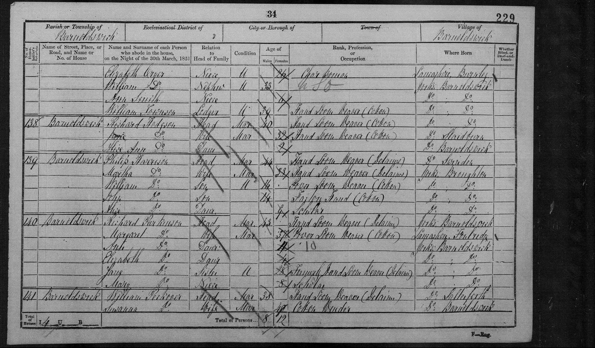 - By 1861 William was married and lived at Monk House Cottage, Barnoldswick. He was a cotton weaver. William and Nancy had a 9 month old child, Isabella. Nancy´s sister Jemima was a visitor for the Census.