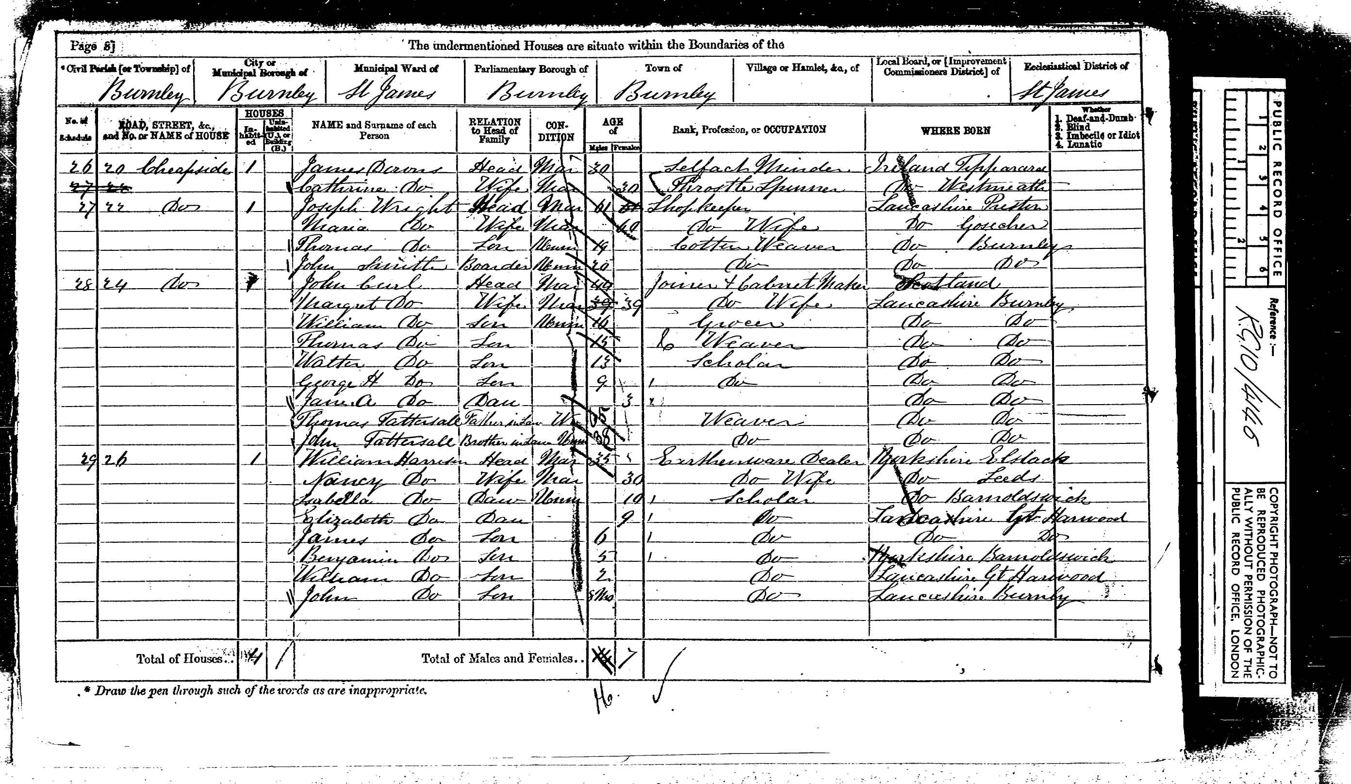 - By 1871 WIlliam was an Earthenware Dealer, living at 26 Cheapside, Burnley, Lancs. By now they had 6 children, with John born in Great Harwood.
