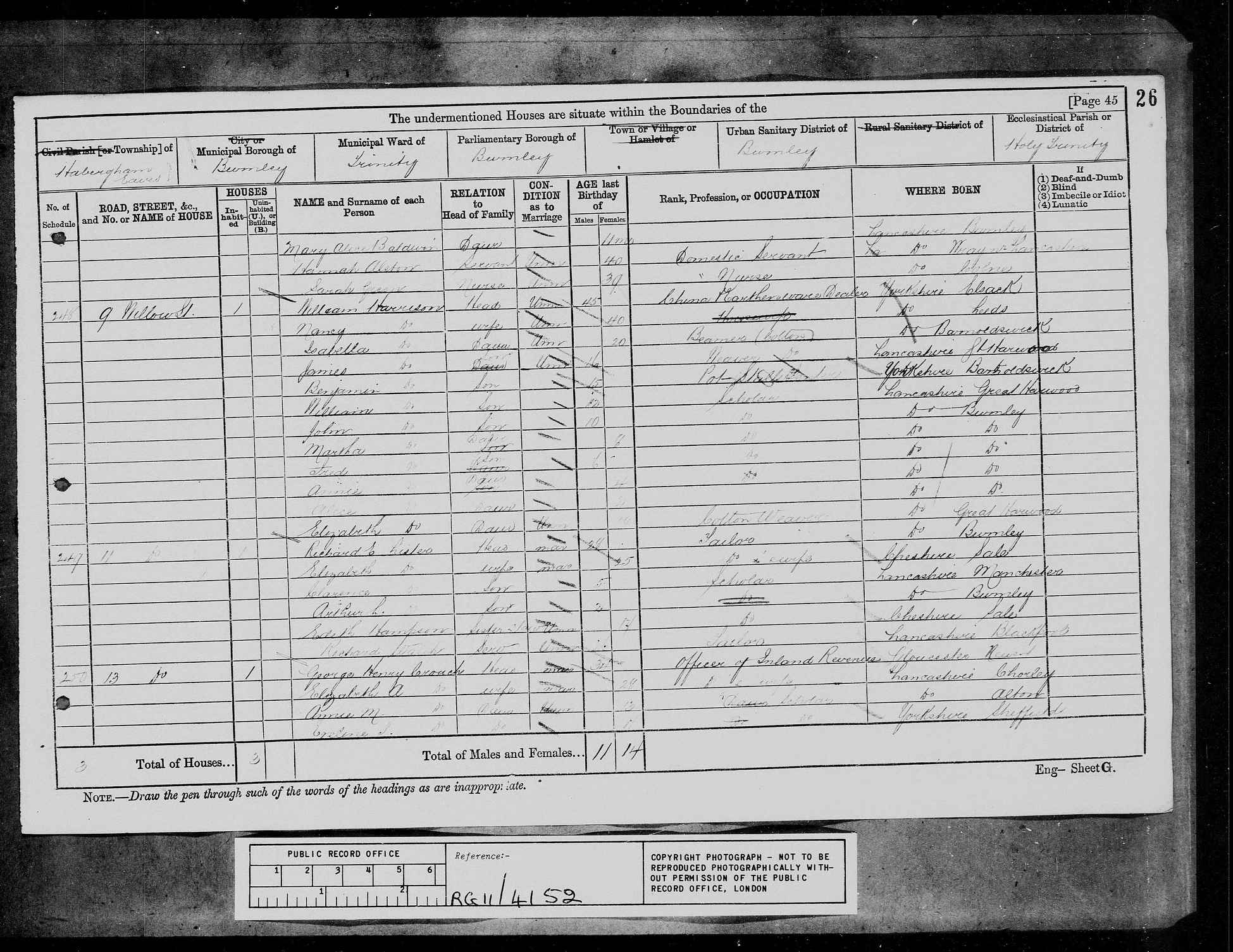 - In 1881 he was a China & Earthenware Dealer, and they lived at 9 Willow St., Habergham Eaves, Burnley with their 10 children.